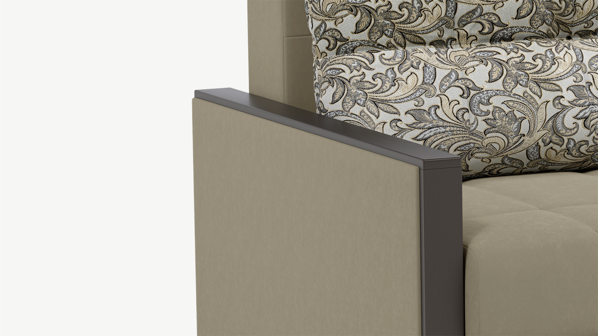 На подлокотники со столешницей Вы всегда сможете поставить чашечку чая. Имитируя фактуру дерева, декоративная накладка здесь буквально обрамляет подлокотники дивана, становясь стильным и практичным решением.