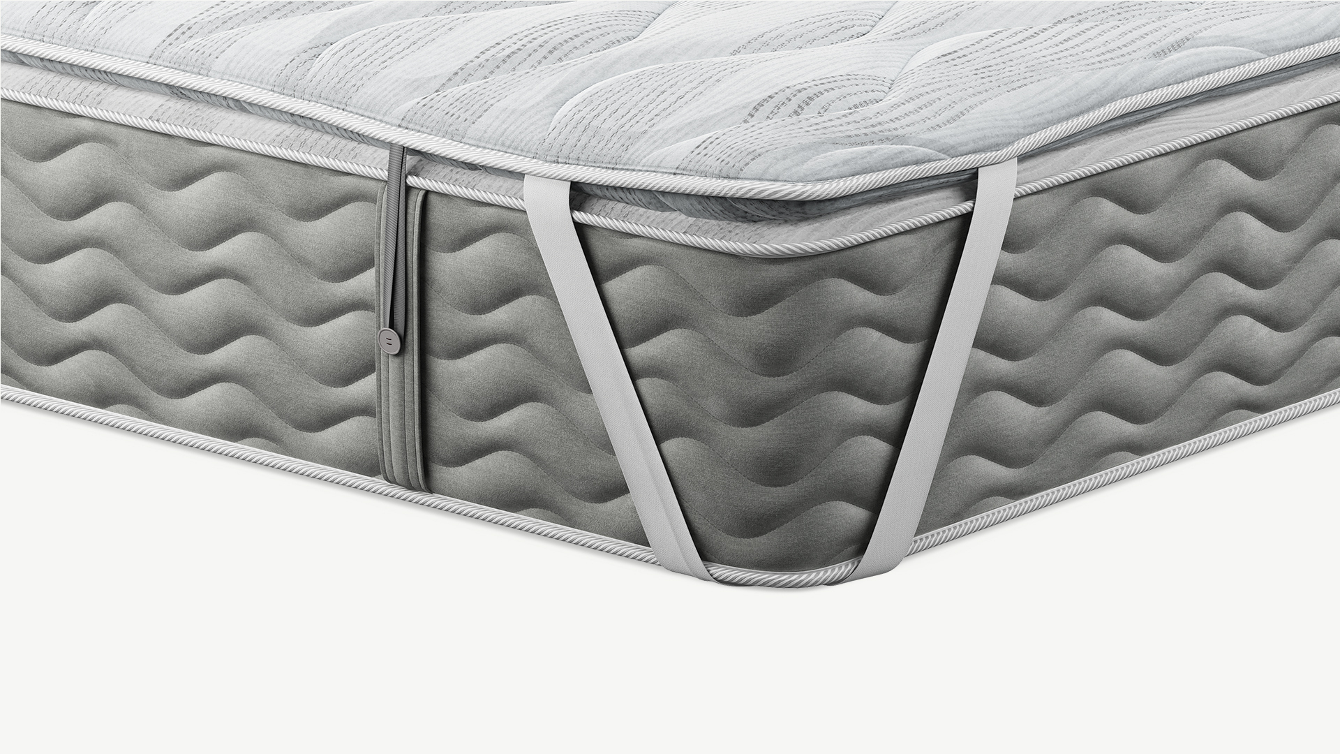 Дополнительно на топпере предусмотрены эластичные петли — для матрасов MOON в комплектациях Comfort и Prestige, оснащенных системой крепления на пуговицы по бокам.
