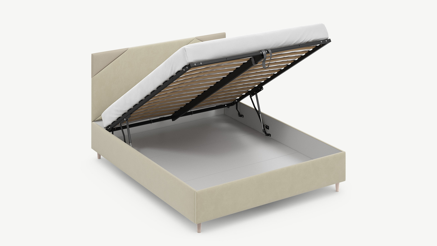• Скрытая под основанием вместительная емкость без внутренних перегородок позволяет использовать всю площадь подкроватного пространства для хранения вещей.