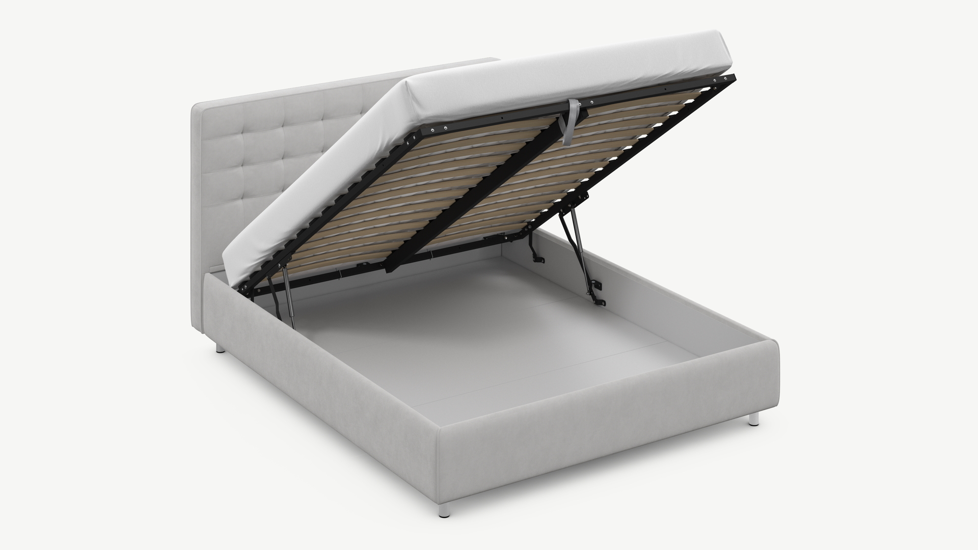 - Скрытая под основанием вместительная емкость без внутренних перегородок позволяет использовать всю площадь подкроватного пространства для хранения вещей.