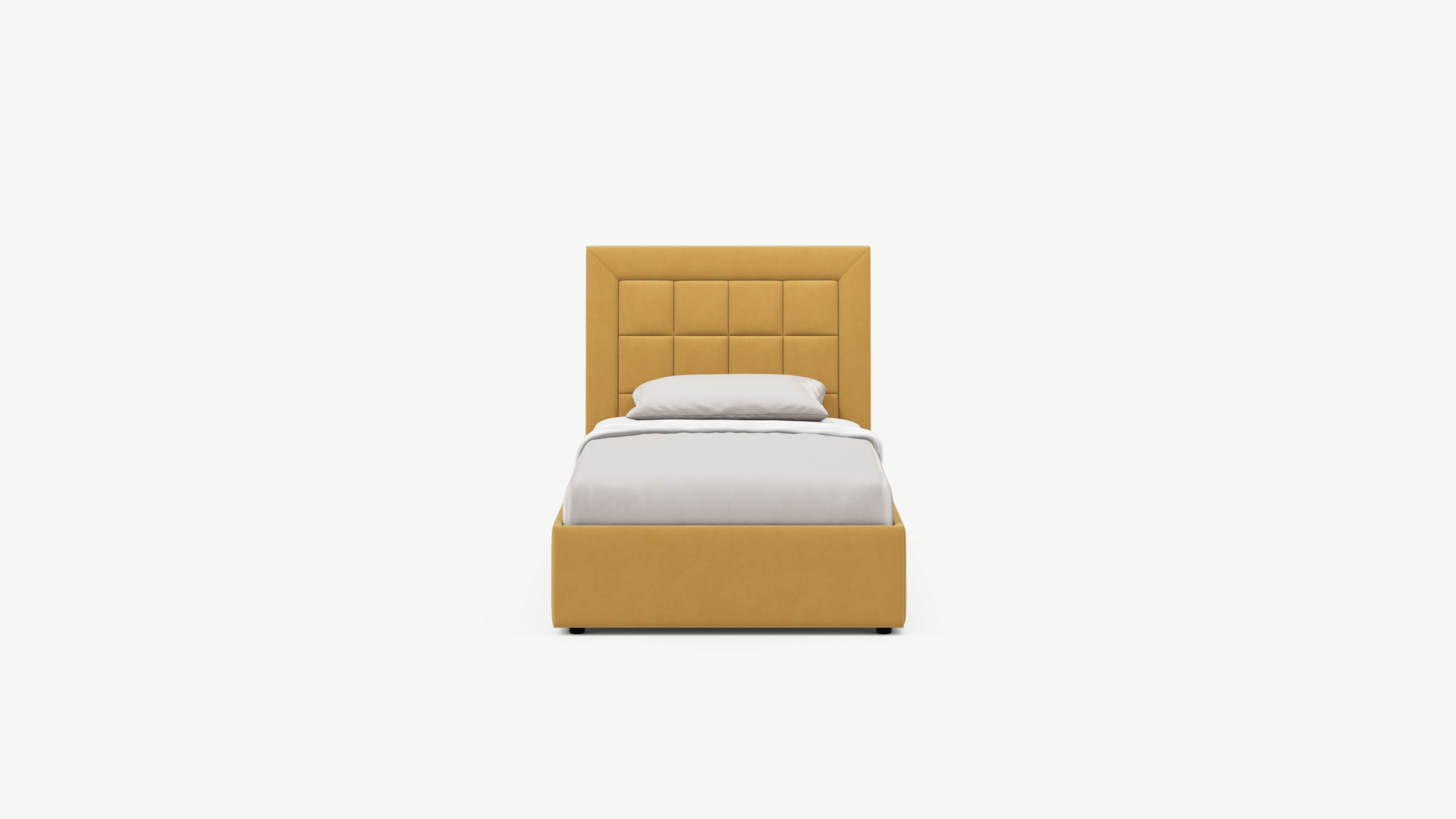 Изголовье декорировано рельефным рисунком стежки в крупный квадрат, получившим особую фактуру за счет глубины шва.