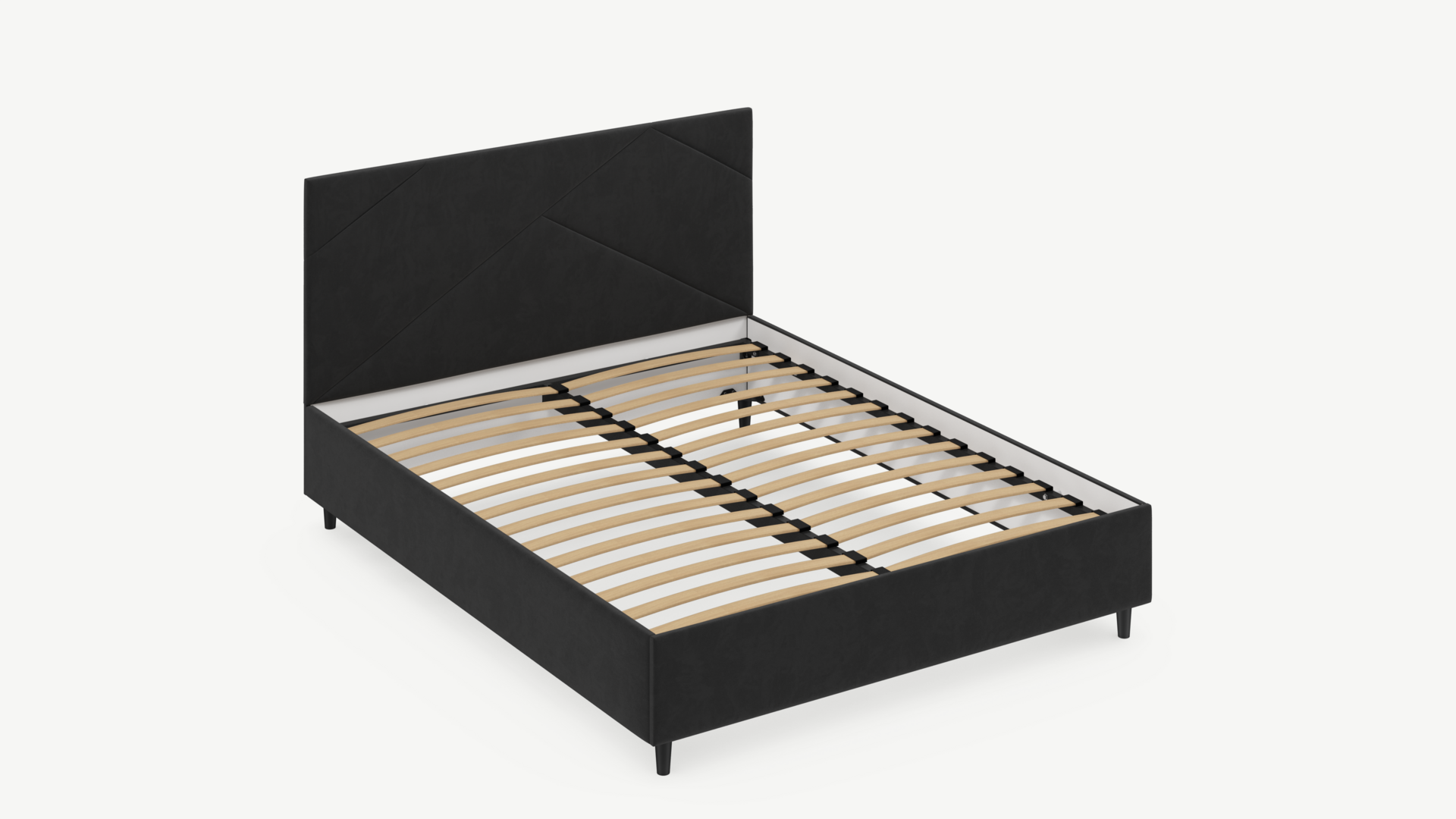 MOON FAMILY 1257 привлекает внимание оригинальным исполнением: широкие полосы ткани эффектно пересекают периметр изголовья, создавая на нем графический орнамент. Лаконичные формы объемных царг создают единый гармоничный образ и фокусируют внимание на центральном текстурном элементе кровати.