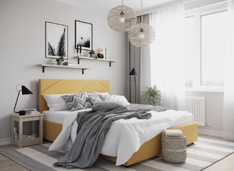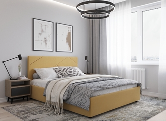 MOON FAMILY 1257 привлекает внимание оригинальным исполнением: широкие полосы ткани эффектно пересекают периметр изголовья, создавая на нем графический орнамент. Лаконичные формы объемных царг создают единый гармоничный образ и фокусируют внимание на центральном текстурном элементе кровати.
