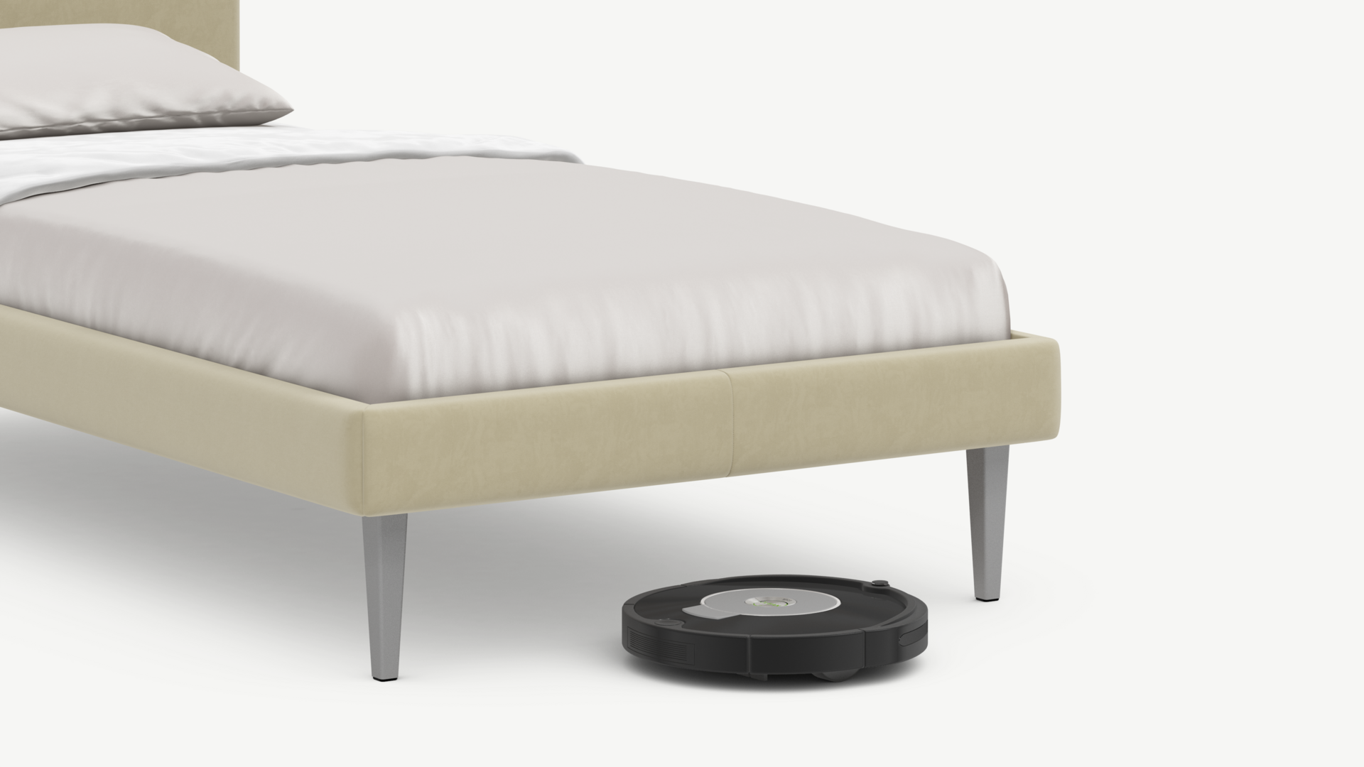 Высокие металлические опоры клиновидной формы эффектно подчеркивают Дизайн MOON FAMILY 1256, а также создают достаточный просвет для движения робота-пылесоса, что помогает поддерживать чистоту и порядок в доме.