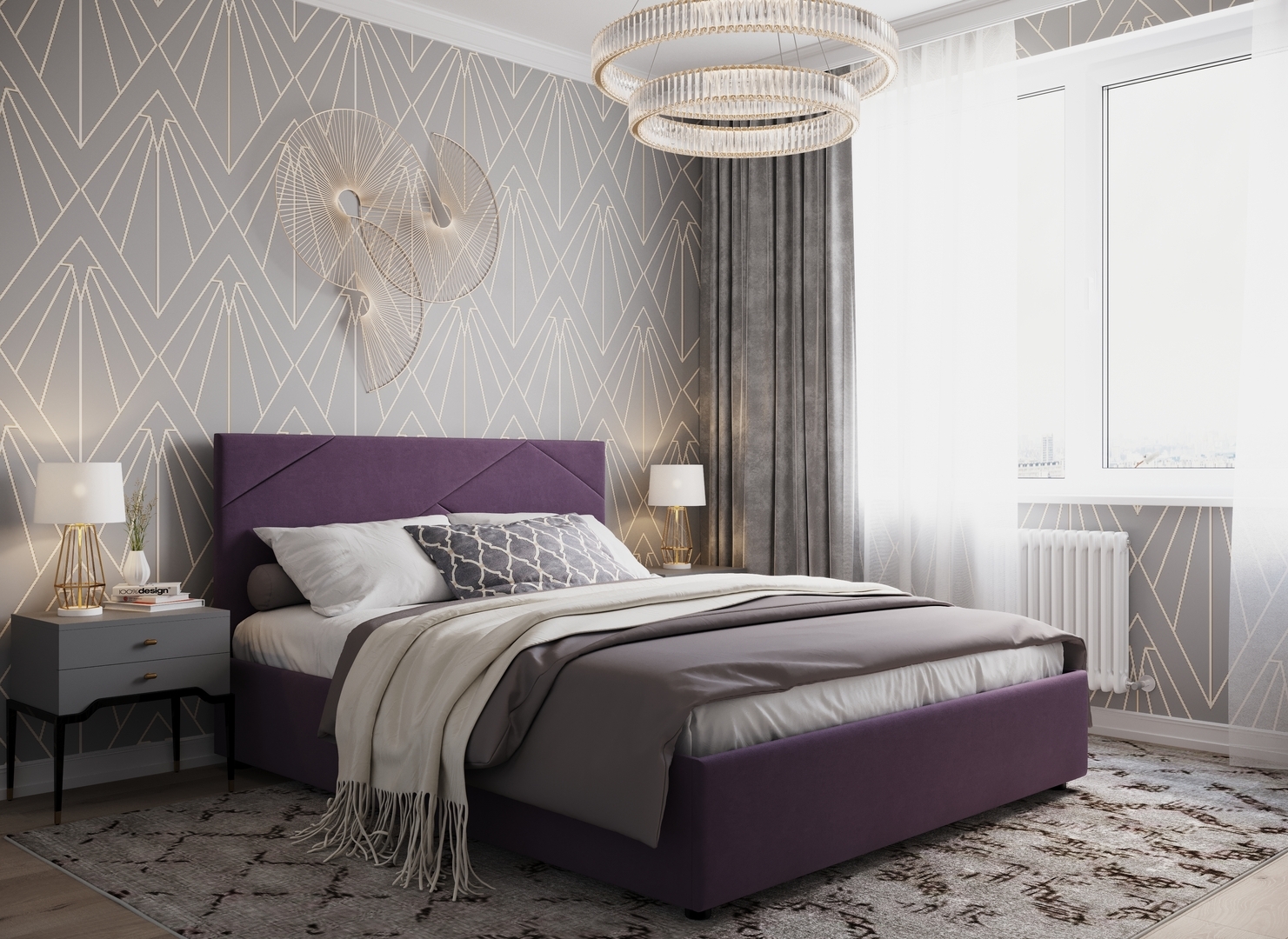 Создать гармоничный интерьер и завершить образ спальни помогут дополнительные аксессуары, например: тумбы, банкетки, подушки.