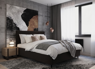 MOON FAMILY 1257 привлекает внимание оригинальным исполнением: широкие полосы ткани эффектно пересекают периметр изголовья, создавая на нем графический орнамент. Лаконичные формы объемных царг создают единый гармоничный образ и фокусируют внимание на центральном текстурном элементе кровати.