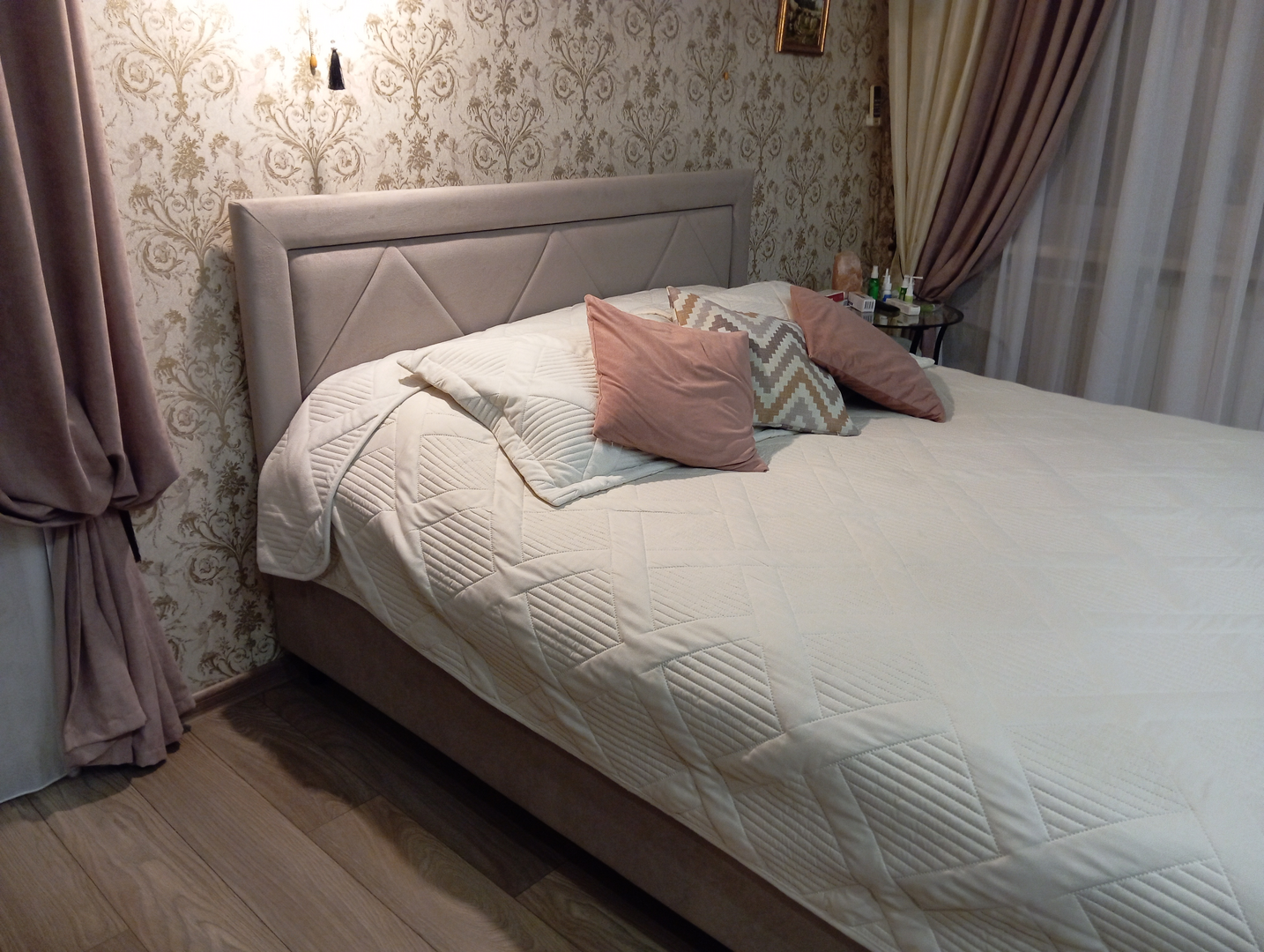 Обратная сторона изголовья требует минимального ухода — достаточно протереть пыль влажной салфеткой. Благодаря этому в спальне сохраняется ощущение чистоты и свежести, что очень важно для здорового сна и комфортного отдыха.