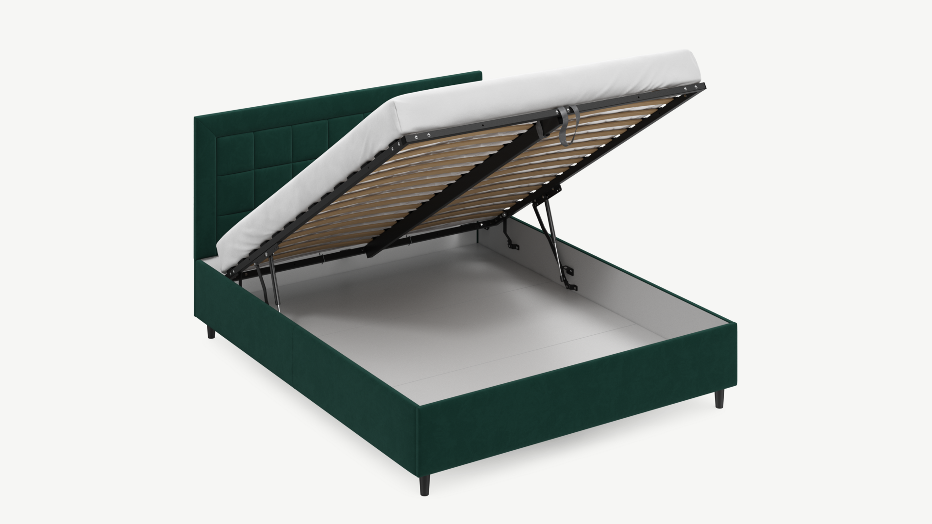 - Скрытая под основанием вместительная емкость без внутренних перегородок позволяет использовать всю площадь подкроватного пространства для хранения вещей.