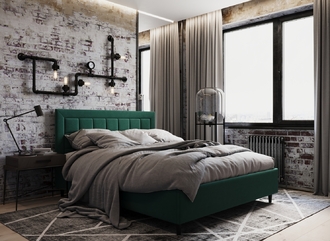 Стежка помещена в центр изголовья и обрамлена, словно картина. Объемные царги становятся гармоничным дополнением образа и завершают цельную фигуру кровати.