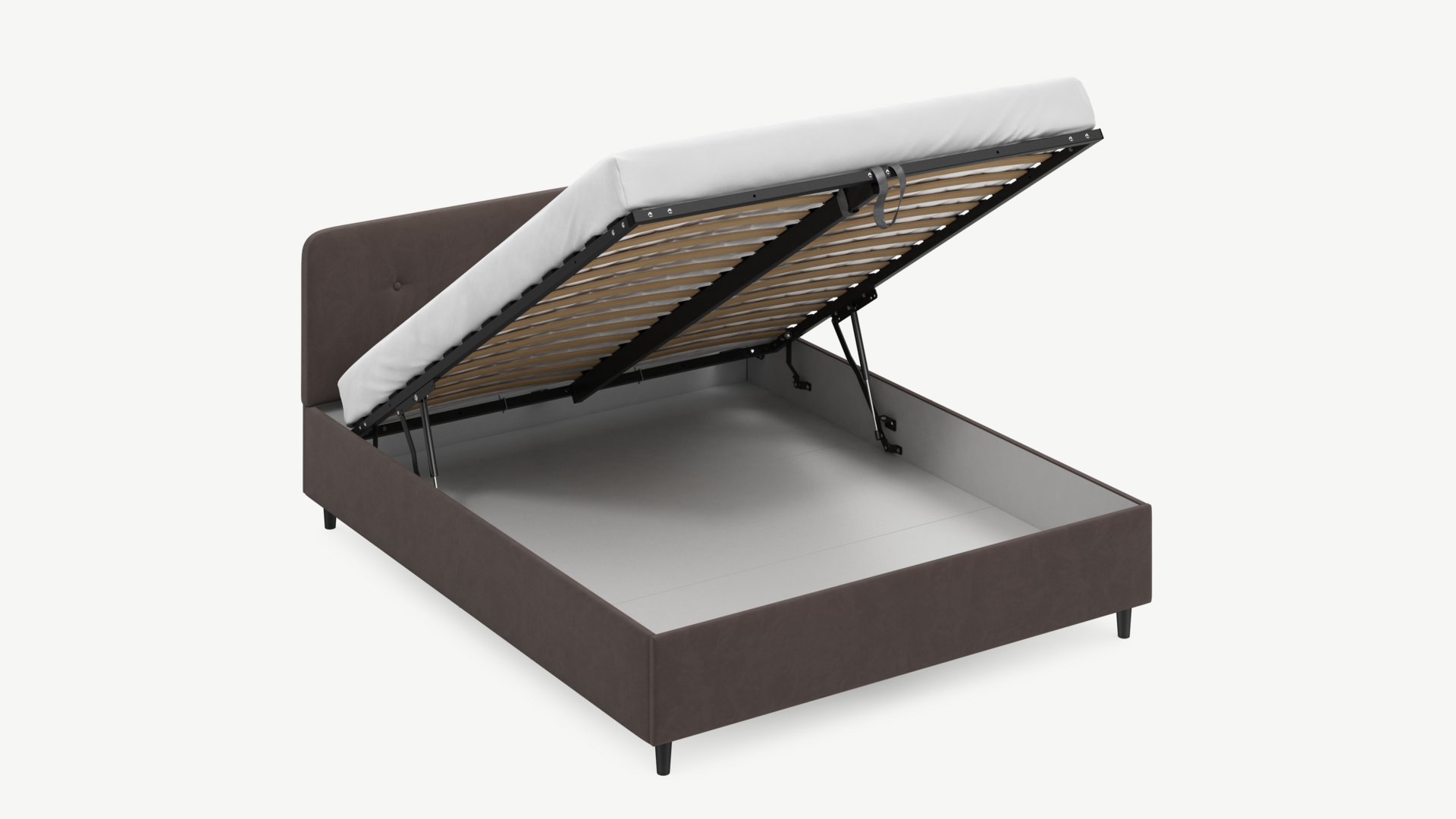 - Скрытая под основанием вместительная емкость без внутренних перегородок позволяет использовать всю площадь подкроватного пространства для хранения вещей.
