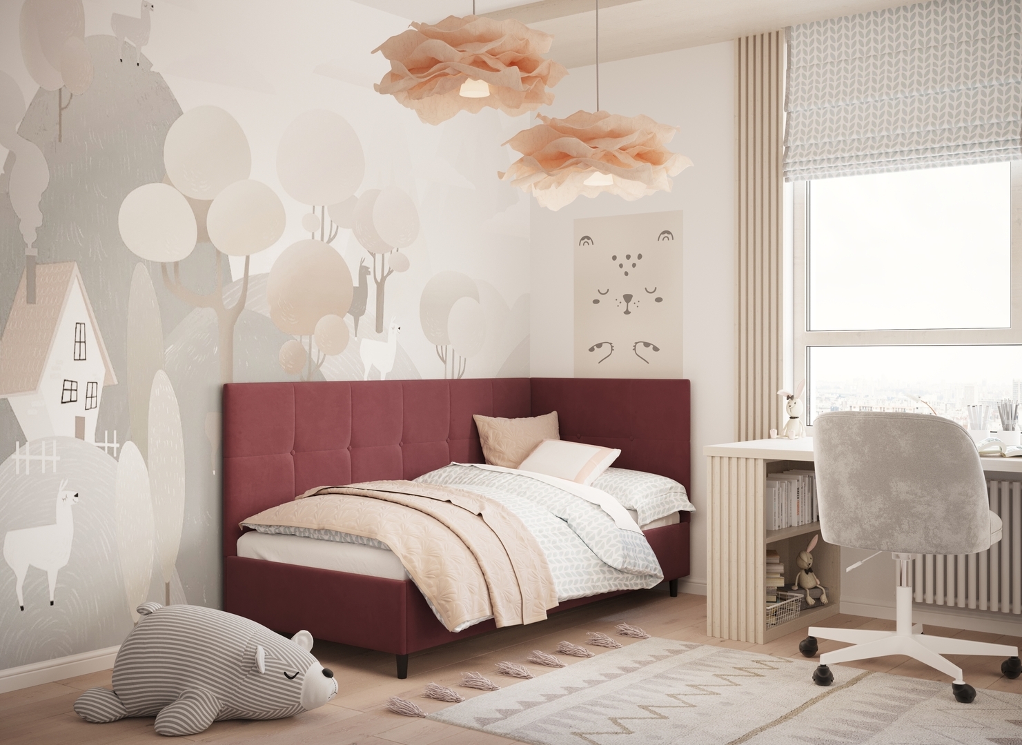 В подростковой комнате эта кровать станет стильным акцентом окружающего интерьера и возьмет на себя роль удобной кушетки для друзей, зашедших в гости.