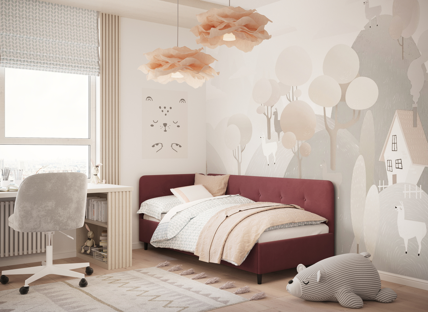 В подростковой комнате эта кровать станет стильным акцентом окружающего интерьера и возьмет на себя роль удобной кушетки для друзей, зашедших в гости.