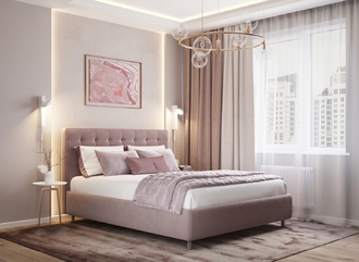 Оформите образ кровати, выбирая обивочный материал, который подчеркнет звучание Вашей спальни и отразит Ваш вкус. Обратите внимание на однотонный гладкий велюр, который усиливает объемную фактуру стежки.