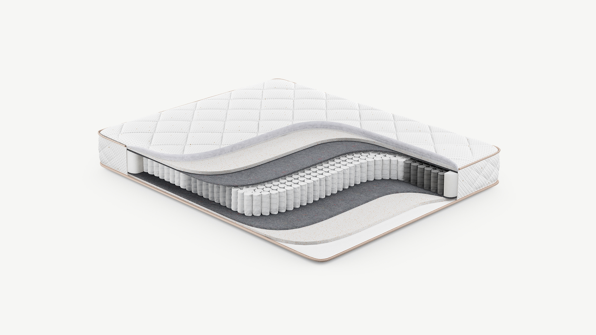 Повышает жесткость и плотность спального места, а также обеспечивает оптимальный воздухообмен благодаря объемной структуре материала. Улучшает эксплуатационные показатели матраса, не давая пружинному блоку механически воздействовать на комфортные слои.
