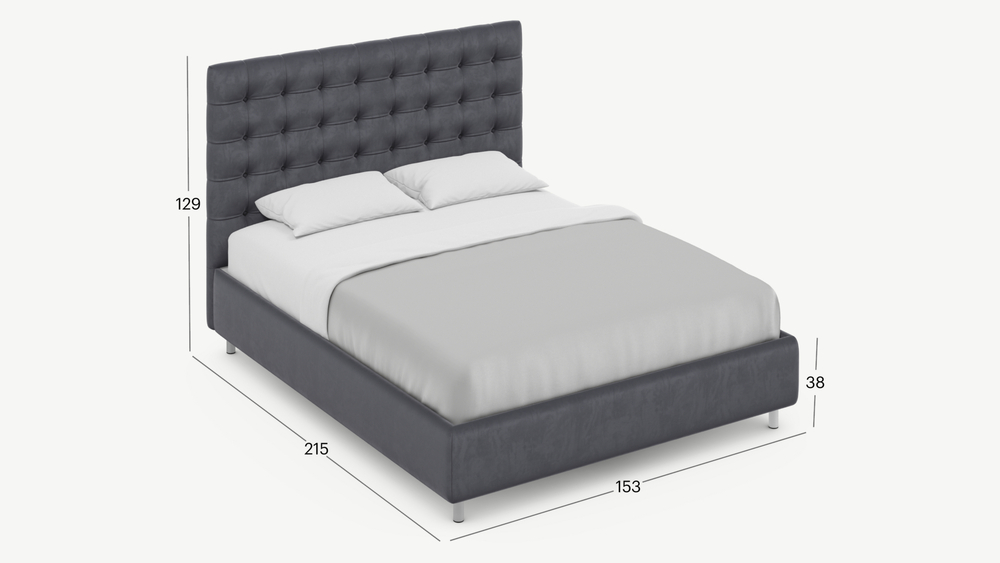 Дизайн MOON 1155 излучает обаяние и роскошь. Центральный элемент кровати, оформленный каретной стяжкой, безупречно сочетается с лаконичной геометрией царг, создавая впечатляющий рельеф. Изголовье респектабельно воплощает идею аристократической элегантности: просыпайтесь и засыпайте, подобно монаршим особам!