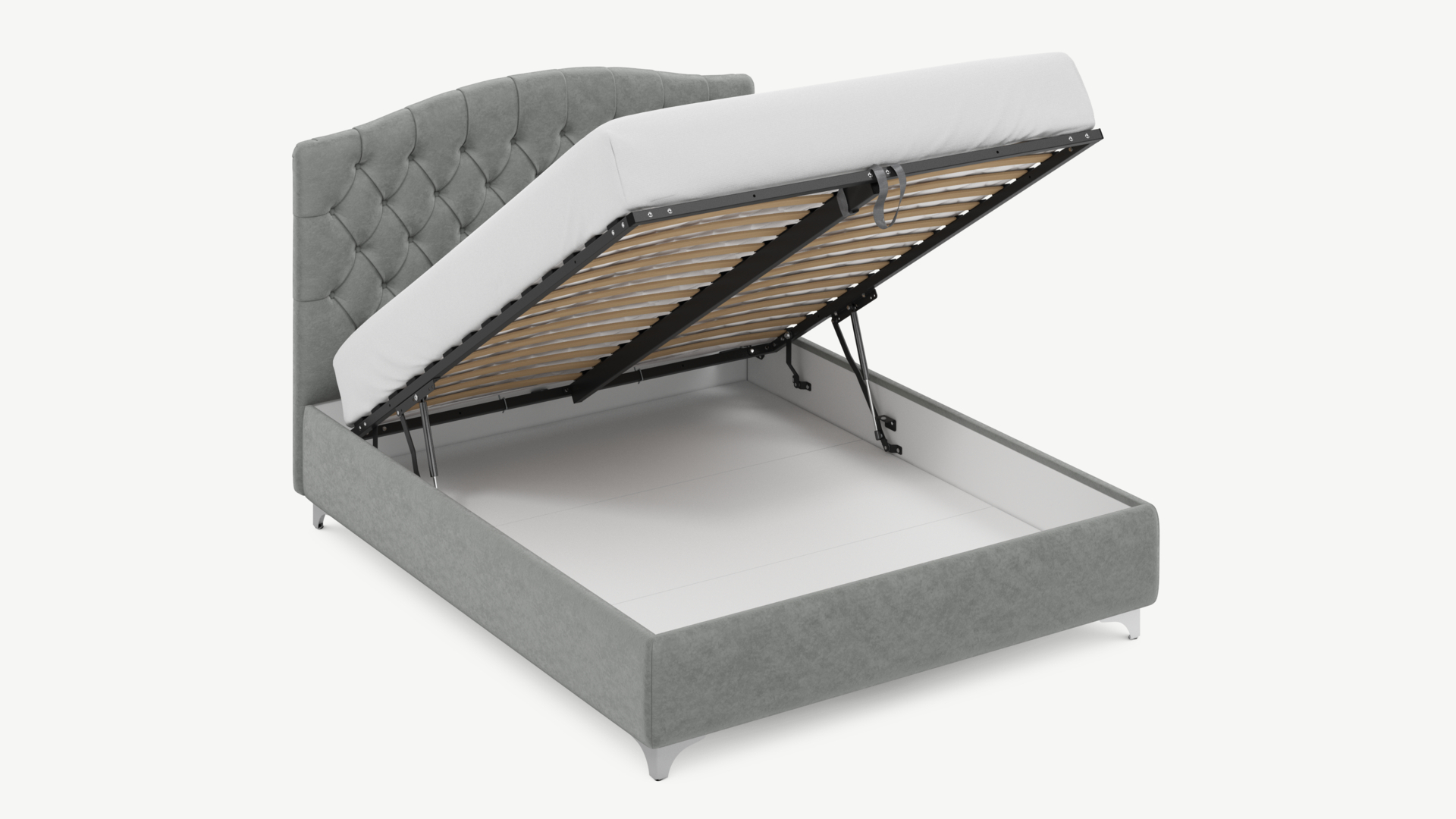 • Скрытая под основанием вместительная емкость без внутренних перегородок позволяет использовать всю площадь подкроватного пространства для хранения вещей.
